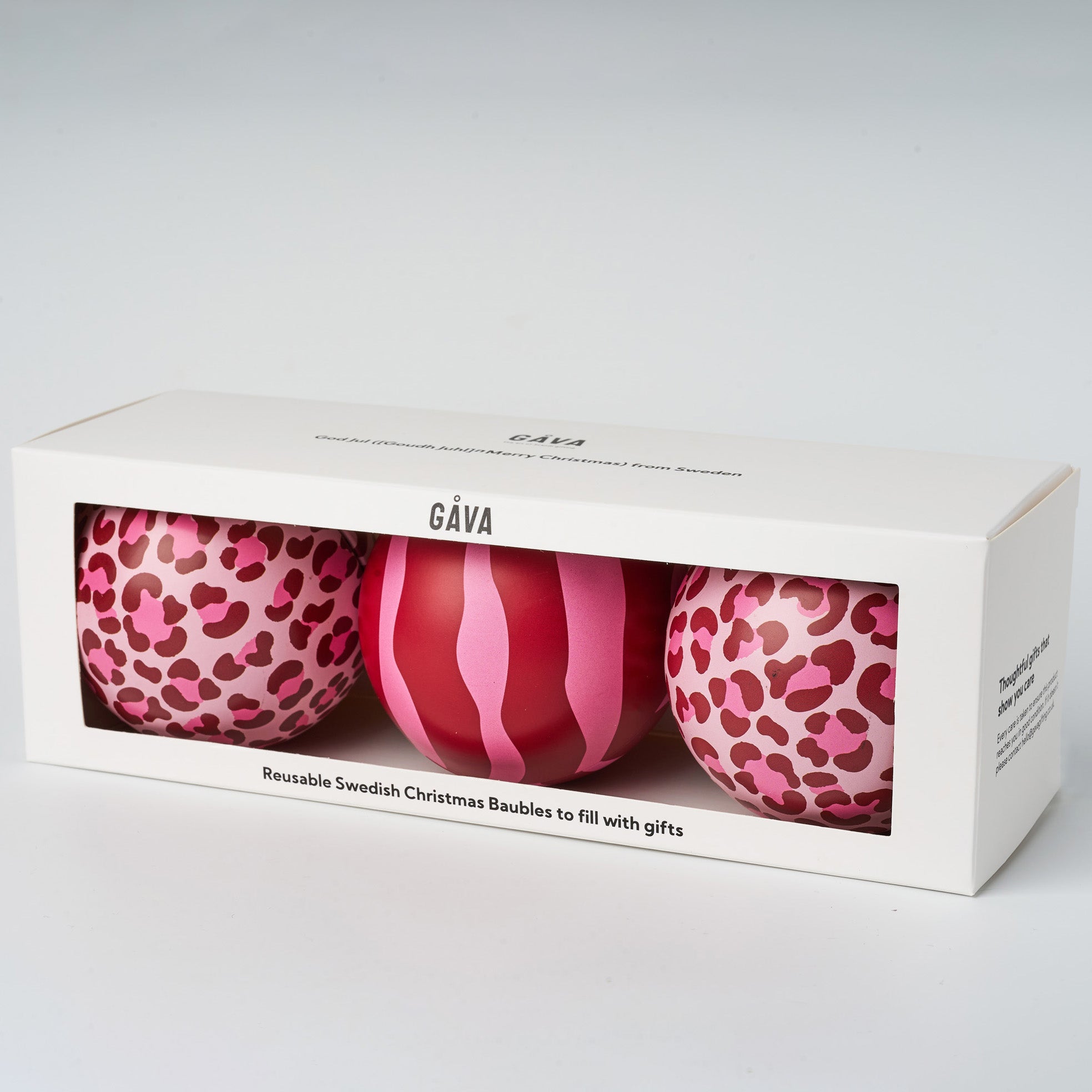 Double the warmth, triple the tradition. This trio pairs two Glögg baubles, inspired by Sweden’s beloved mulled wine, and Arne, a tribute to the iconic Christmas Eve TV host. Together, they bring comfort, nostalgia, and Scandinavian charm to your celebrations. With leopard and zebra prints making them pop against the tree.